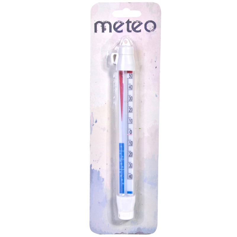 Пластмасов термометър за хладилник или външна употреба със стъклена тръбичка с течност, без живак.