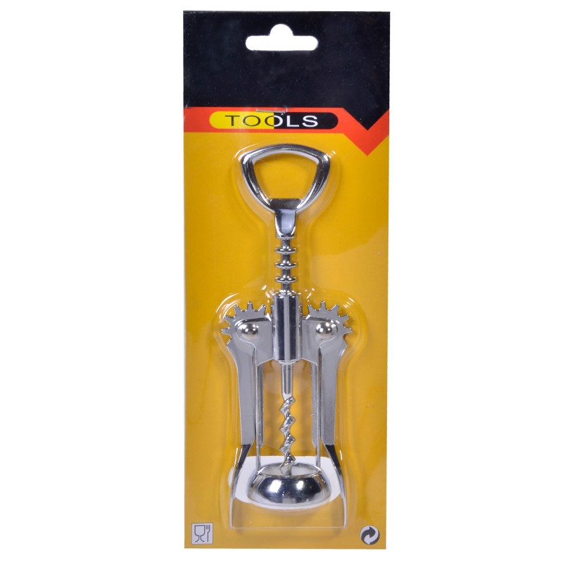 Класически кухненски тирбушон с лостов механизъм, изработен е от неръждаема стомана с хромирано покритие.