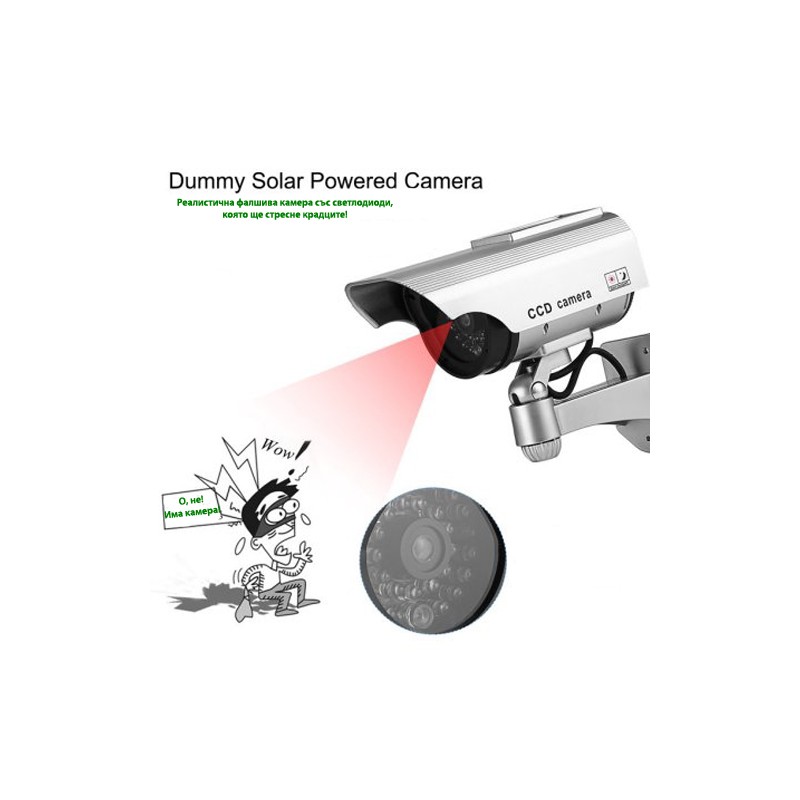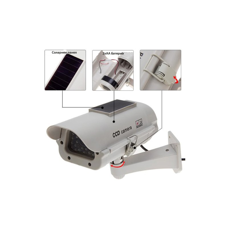 Соларният панел на Dummy Camera може да зарежда батериите, така че никога да не се притеснявате да ги замените.