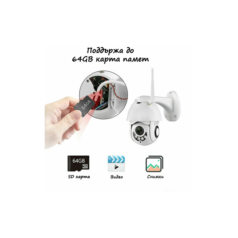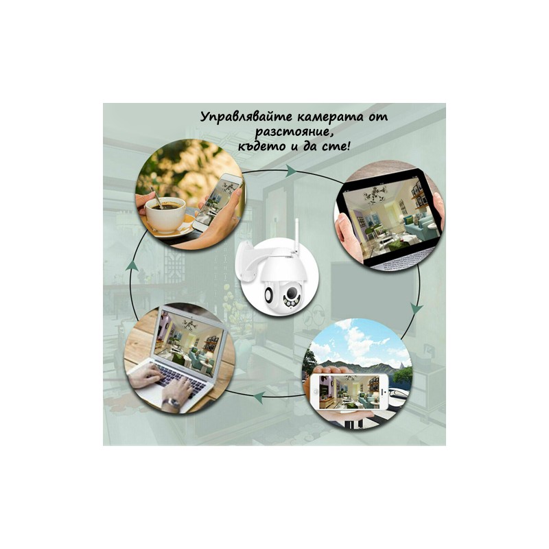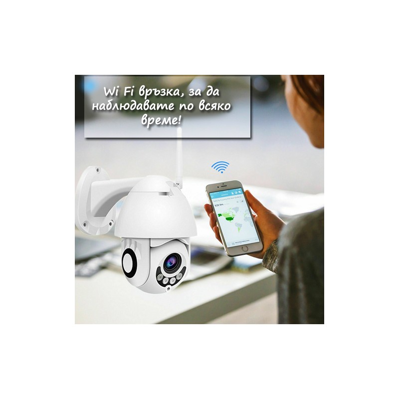 Безжична Wi-Fi IP камера за видеонаблюдение съвместима с всяко smart устройство (мобилни телефони, таблети или персонални компютри) чрез Wi Fi интеграция.
