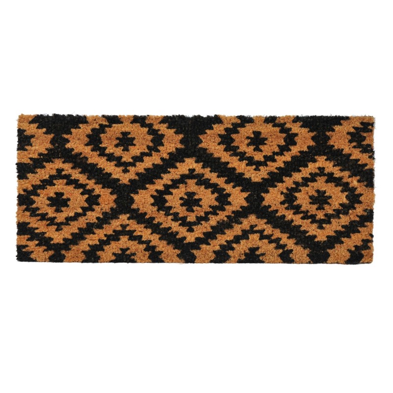 Входна изтривалка в светло кафяв цвят с черни ромбоиди, изработена от PVC и кокосови влакна.