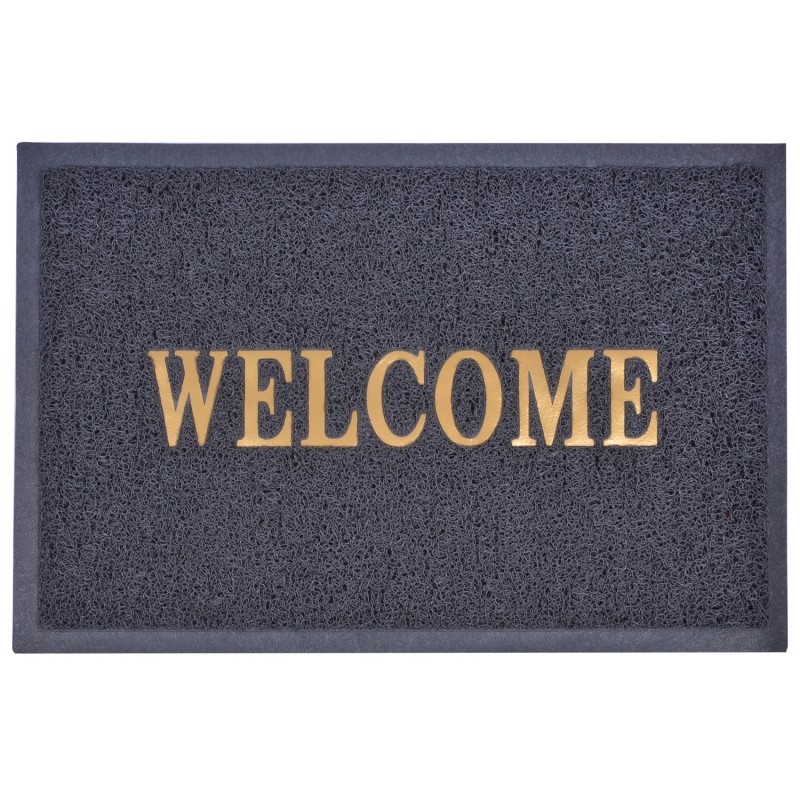 Входна изтривалка в цвят графит с надпис WELCOME, подходяща за големи пространства със слаб или средно тежък трафик, където е необходимо противоплъзгащо покритие - офис сгради, хотели, банки, магазини, пощенски офиси.