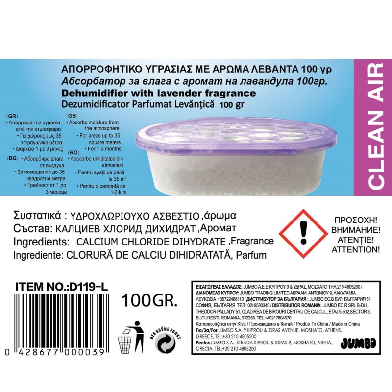 Влагоабсорбаторите предотвратяват образуването на мухъл и неприятни миризми и оставя приятен аромат на лавандула.