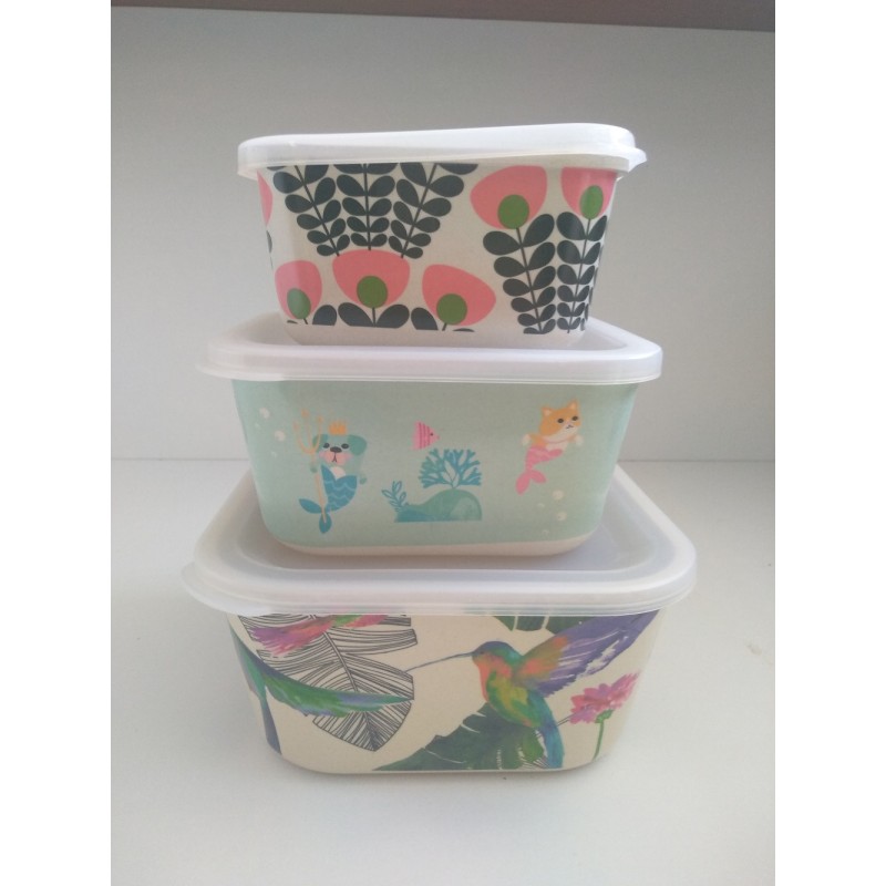 Страхотен ЕКО комплект от 3 броя БАМБО кутии с херметически капаци за свежа храна. Подходящи за съхранение и пренасяне на закуска и обяд.