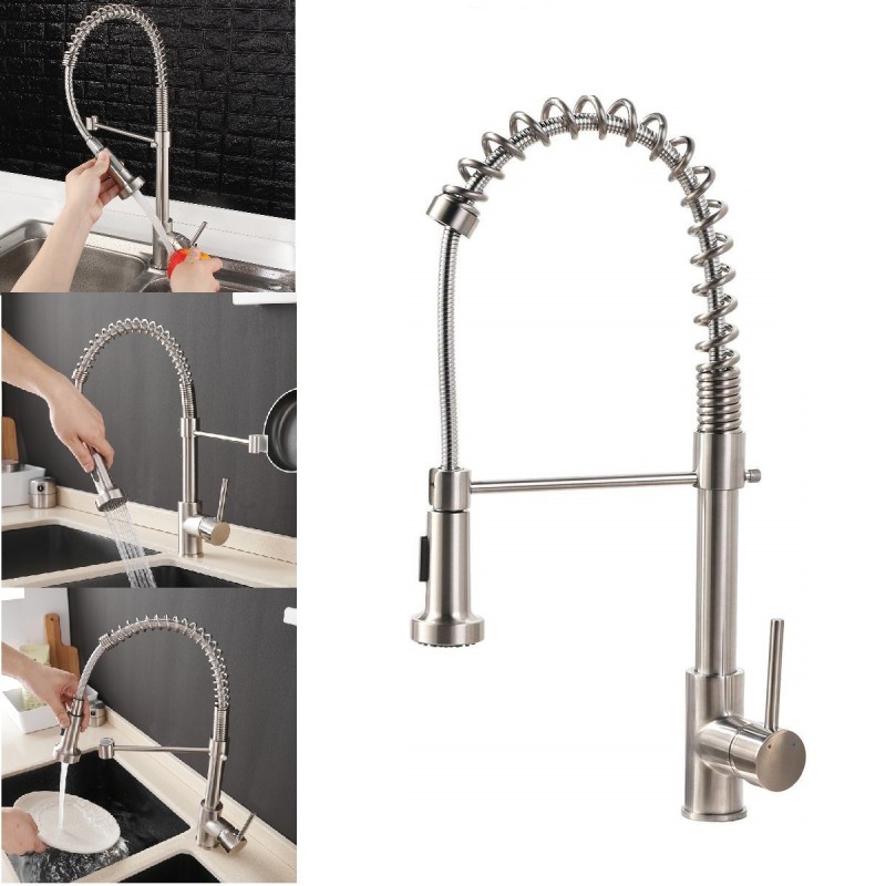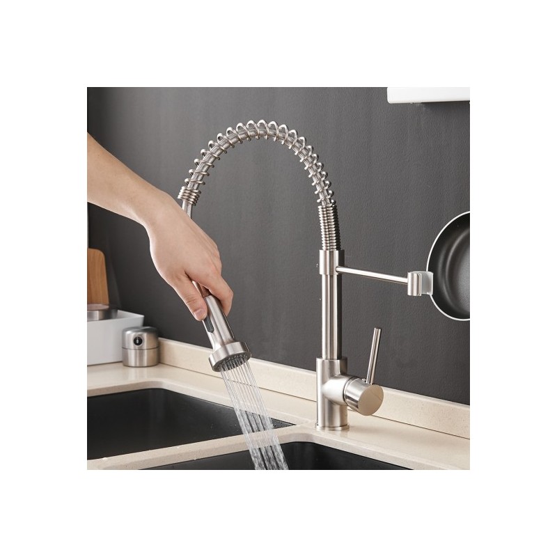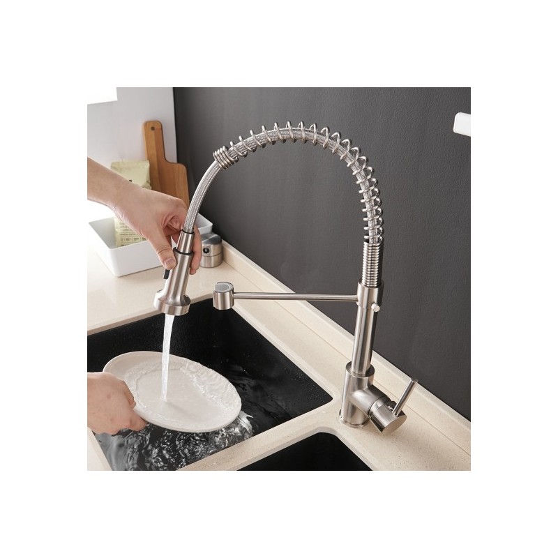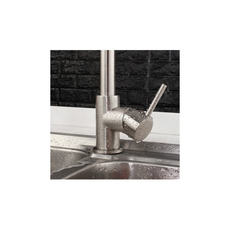 Батерията за чешма разполага с висок, подвижен и гъвкав накрайник за бързо и лесно измиване. Може да се върти на 360 градуса, което го прави изключително удобен за измиване.