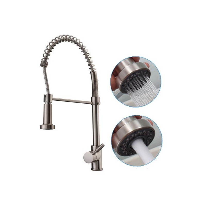Висок смесител за чешма с гъвкав накрайник и два режима на струята на водата. Практично решение за всяка кухня - многократно улесняващо измиването.