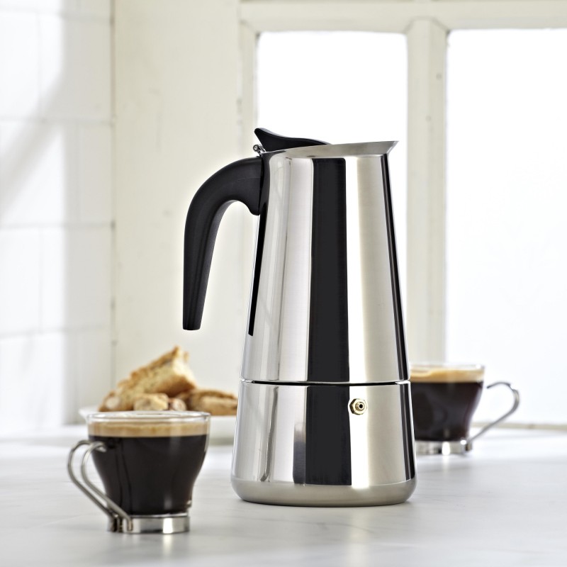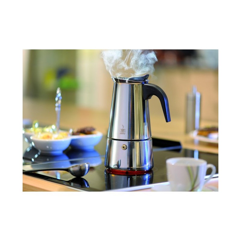 С нея ежедневно ще приготвяте ароматно кафе еспресо с плътен и наситен вкус. Ако добавите прясно мляко ще получите невероятно капучино. Тайната на вкусното кафе, което правят тези кафеварки, се крие в тяхната висококачествена изработка и високото налягане, което образуват при нагряване. Корпусът от неръждаема стомана с красив дизайн, придава автентичен стил на всеки интериор. Уредът разполага с термоустойчива дръжка и механизъм за отваряне на капака, които предпазват ръката от изгаряне. Има и вградена клапа за изпускане на парата.