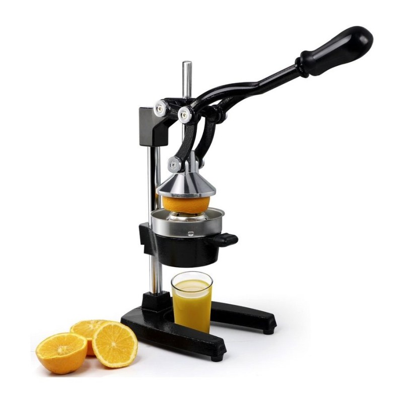 Разполага с дръжка тип преса, която с леко натискане изтисква всяка капка от плода БЕЗ усилия - бързо и лесно.