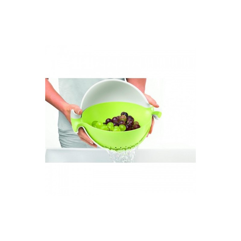 Неразсипваща се купа тип гевгир - практично решение за Вашата кухня, с което миете продукти и изливате водата само с едно движение!