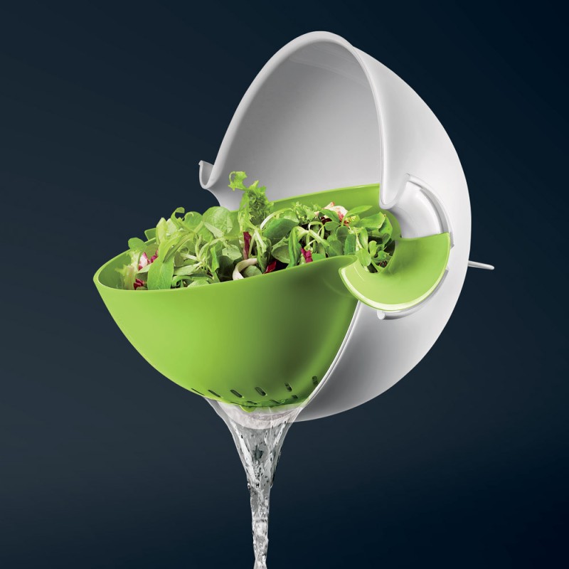 Прецеждането на излишната вода от купата е изключително лесно. Просто накланяте и двойното дъно ще задържи продуктите в хоризонтална позиция, докато водата се оттича през външната стена с отвори. Принципа на работа на тази купе е основан на жироскопичният ефект.