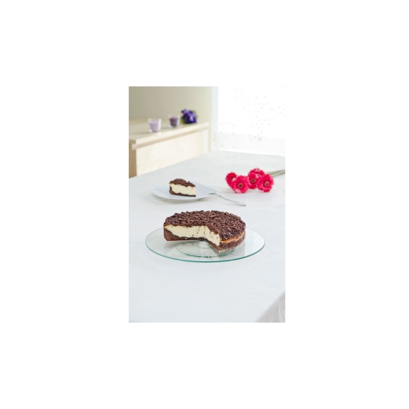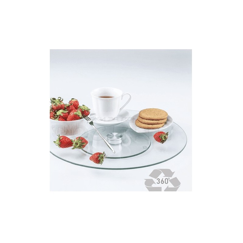 Въртяща се поставка за храна с въртящ механизъм. Стъклена поставка подходяща за торта, мъфини, кексчета, ордьоври, сирена и всякакъв вид специалитети, заслужаващи презентация.
