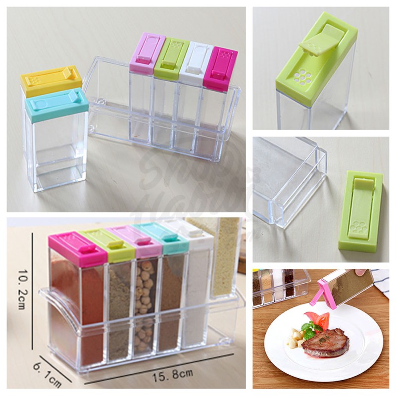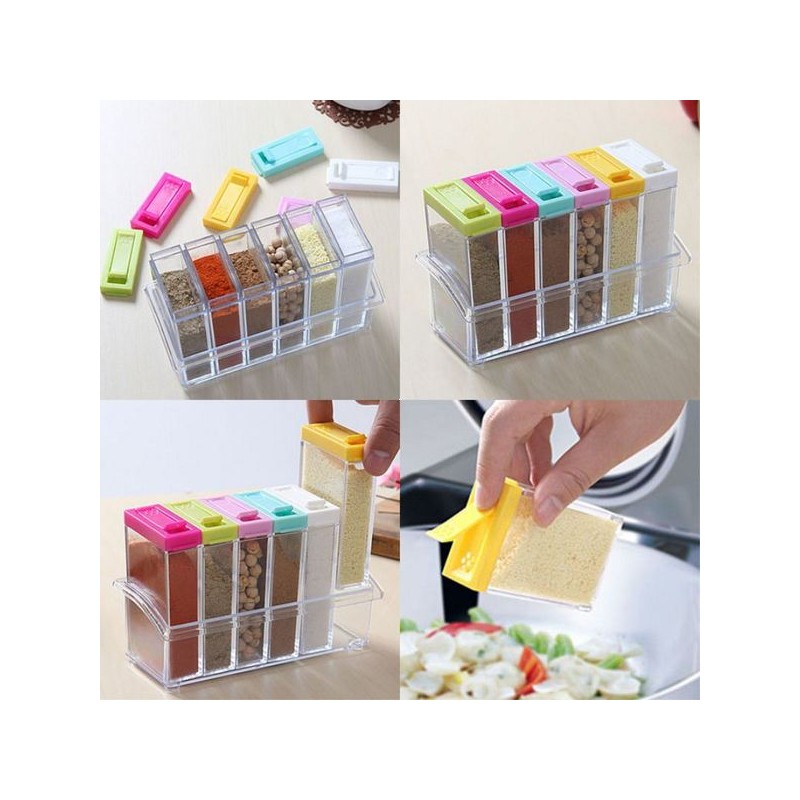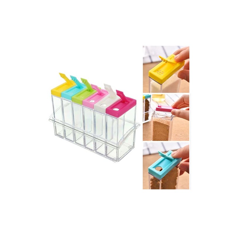 Подредете подправките с този практичен кухненски органайзер 6 в 1. Съдържа 6 кутийки прилежно подредени в удобна подложка. Всяка кутийка притежава разноцветен капак с отвор за поръсване.