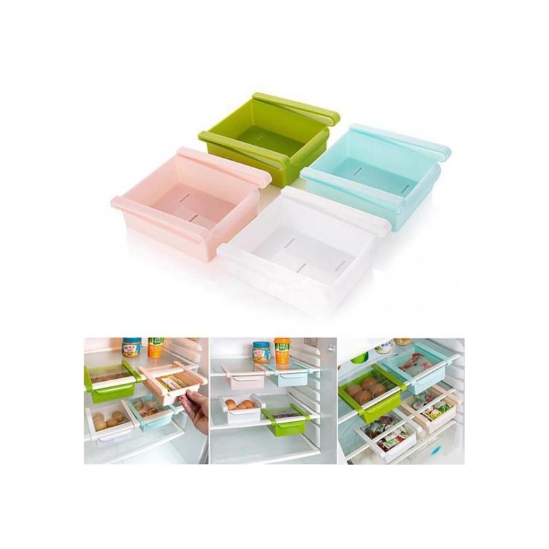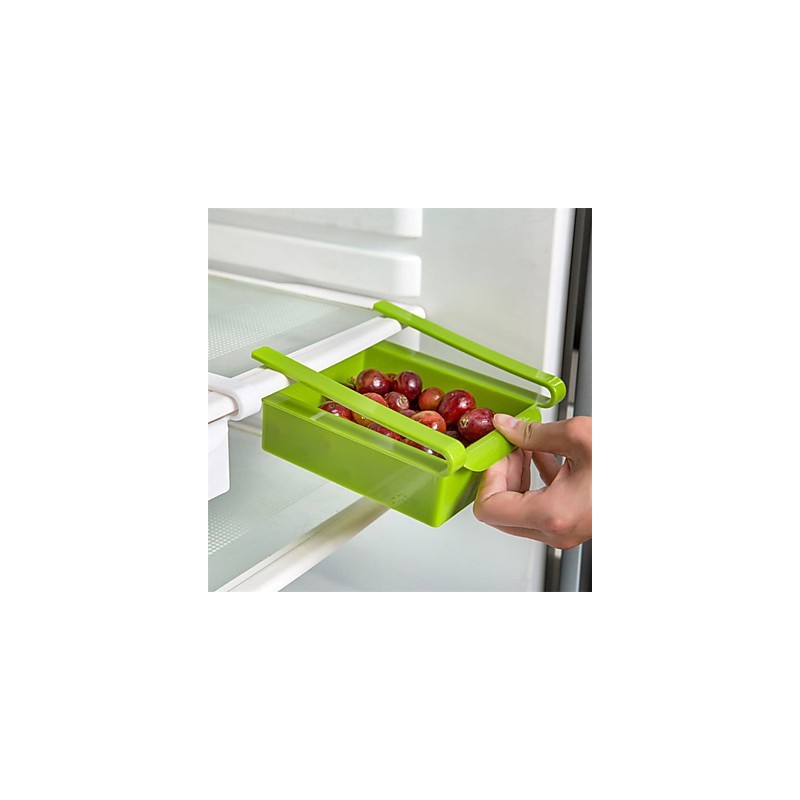 Кутията за хладилник е перфектно решение на този проблем. Тя е изработена много хитро с дизайн наподобяващ мини чекмедже с пластмасови щипки, които се захващат за горната част на рафт на хладилника. По този начин само с едно движение - издърпване, имате достъп до съдържанието в нея. След това просто я бутнете в първоначалната си затворена позиция - подобно на чекмедже.