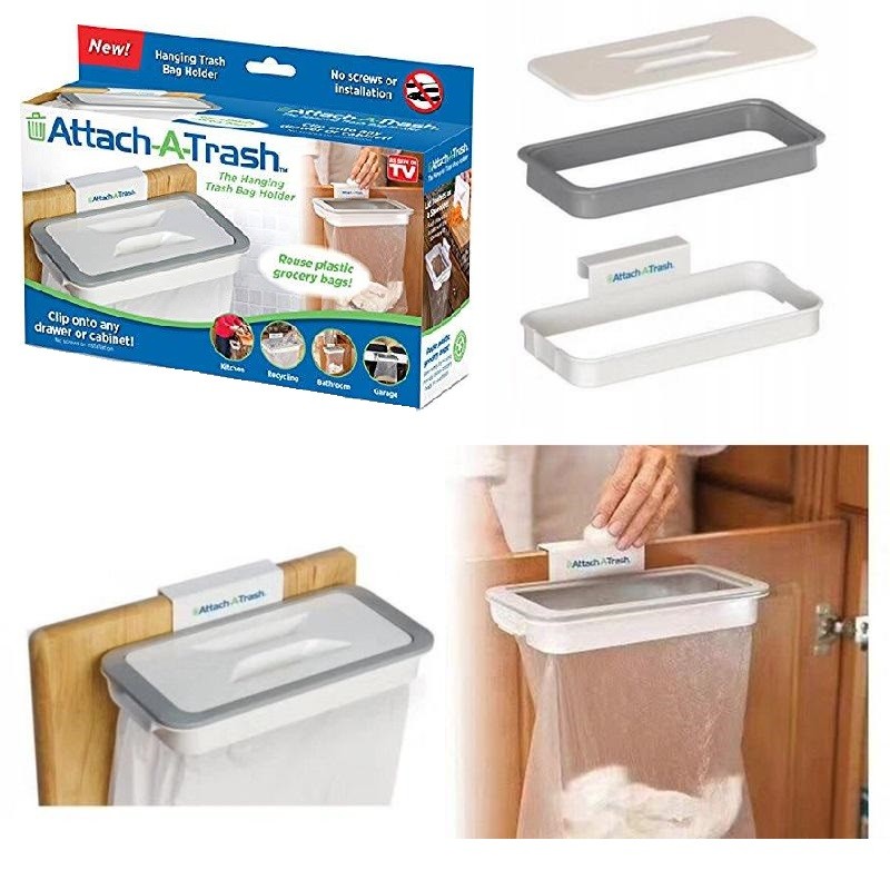 Имате нужда от кухненско кошче, но просто нямате място? Тоази поставка е идеалното решение. Висящият държач за торби е изключително лесен за инсталиране. Не е необходимо да се завинтват болтове, само закачате щипката за вратата на шкаф и готово. С него може да използвате многократно найлонови пазарски торбички. Спестявате пари от купуването на нови торби за смет и премахвате нуждата от едри, мръсни кофи за смет 2в1. Бързо, лесно и практично!