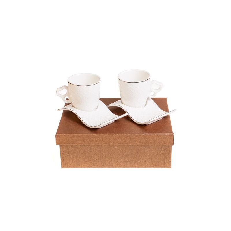 Луксозен комплект за кафе с чаши за еспресо и чинийки с дръжки във формата на сърце.