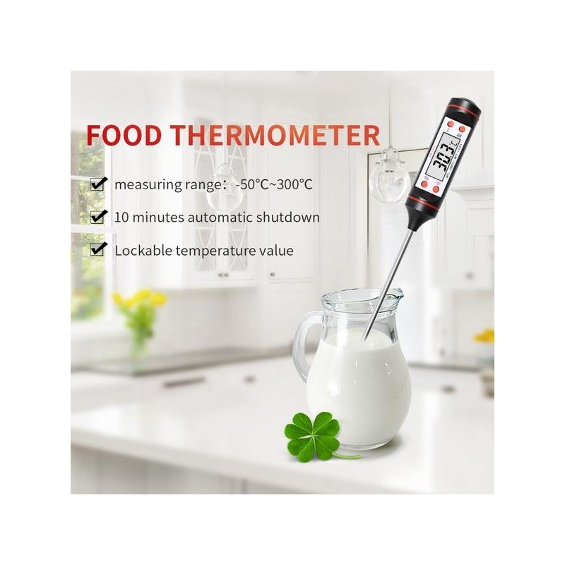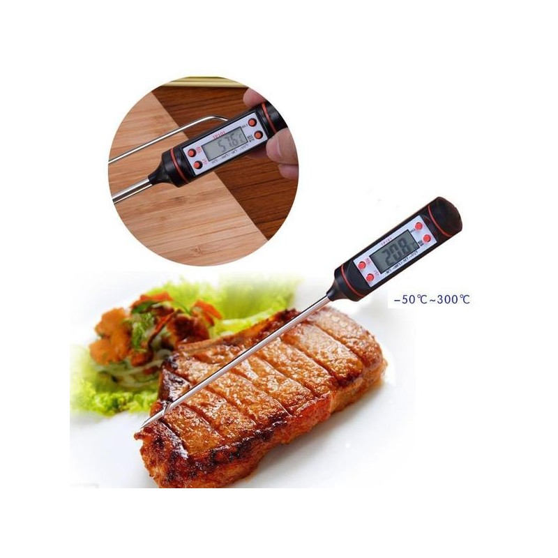 Измерването се осъществява с пъхане на металния тестер - шиш в храната или течност, след което се изчаква около 10/15 секунди. Дигиталният дисплей вграден в дръжката ще Ви изобрази точната моментна температура.