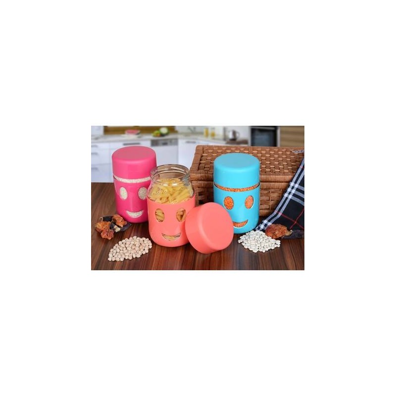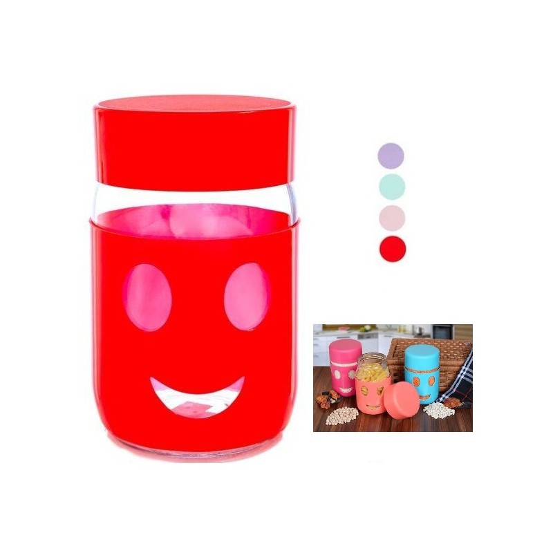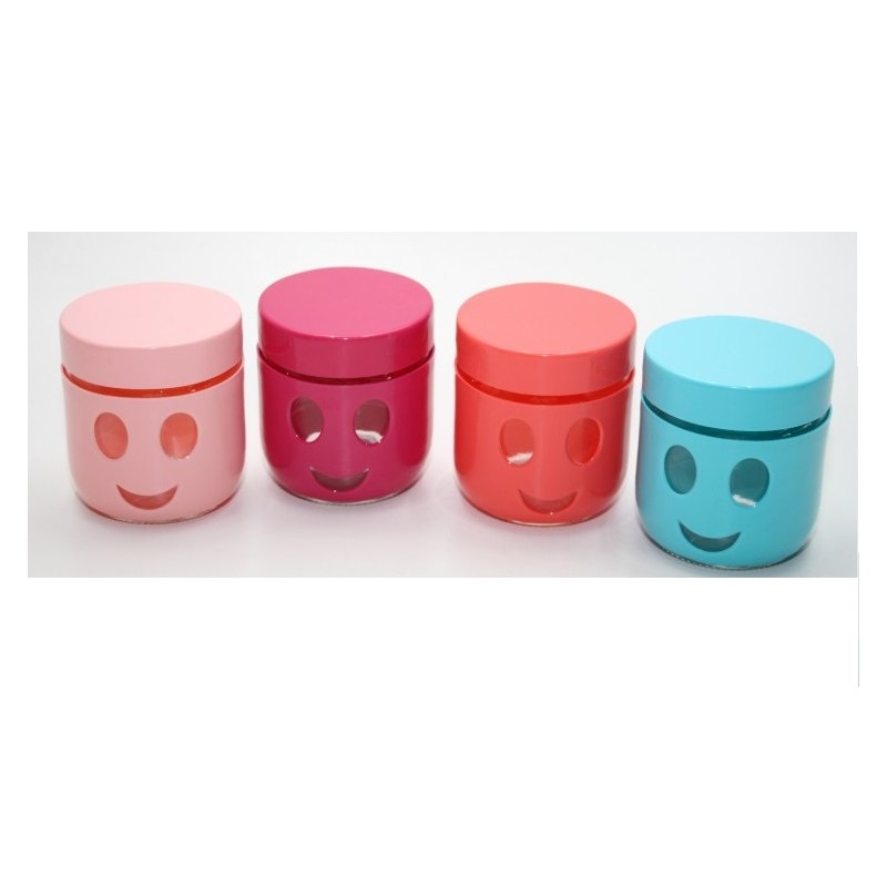 Буркани с винт, пластмасово покритие и капак. Изключително оригинална визия във формата на усмихнато лице.