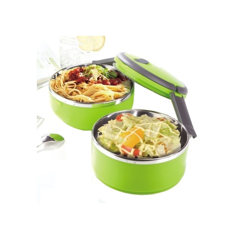 Тайната на термоустойчивият и ефект се крие в двойните стени с външна термоупорна пластмаса и вътрешност от неръждаема стомана. Комбинация с херметически капак, който се затваря плътно без да пропуска въздух и предпазва от разливане, превръща този съд в най-подходящият за пренасяне на храна. Съдът разполага и с удобна ротационна дръжка за лесно пренасяне.