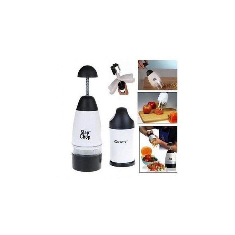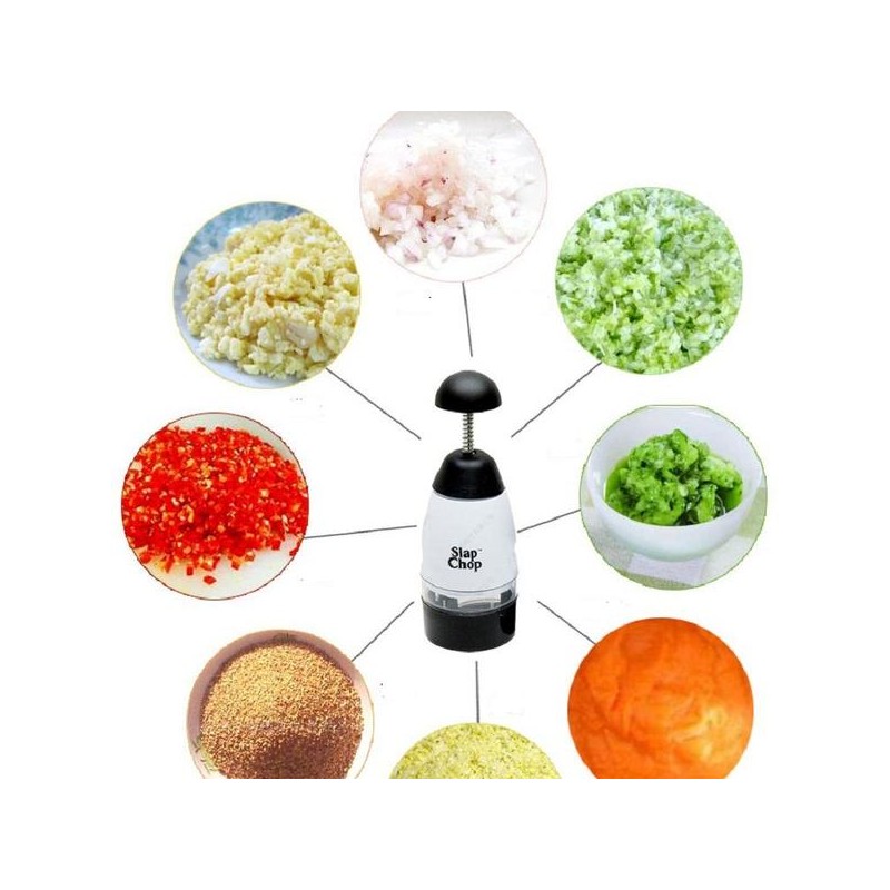 Кажете край на порязванията и сълзите при рязането на лук! Само с едно рязко движение ще разрежете. С няколко последователни натискания лесно и бързо ще накълцате и раздробите: зеленчуци, плодове, лук, чесън, ядки и всичко, което пожелаете; Колкото повече го натискате, толкова по финно ще накълца.