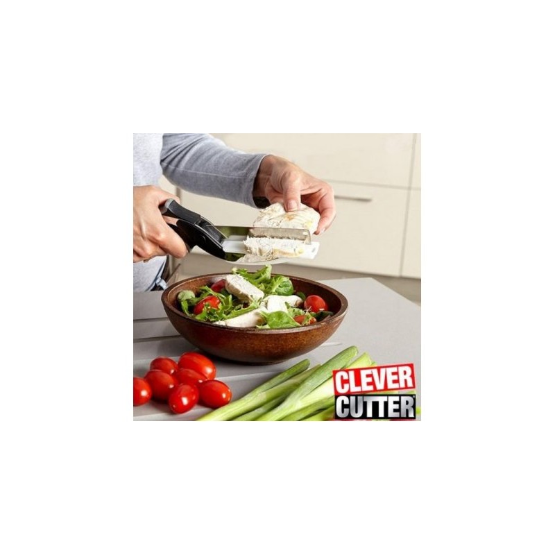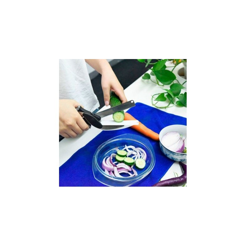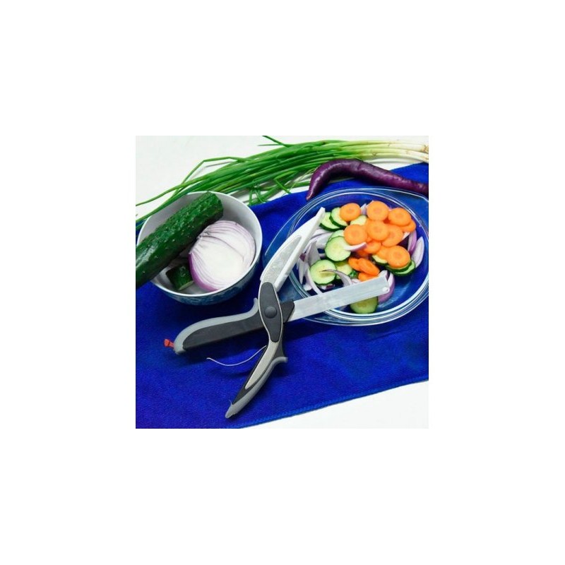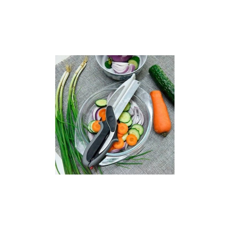 И има защо! С нея повече няма да са Ви необходими дъски за рязане, ножове, почистването им след това, да се чудите къде точно да извършите тази процедура, разпилени и паднали продукти, а и най - лошото порязани пръсти! С ножицата за зеленчуци и месо ще нарежете Вашата храна - бързо, лесно и безопасно, при това директно в съда, в който искате да е!