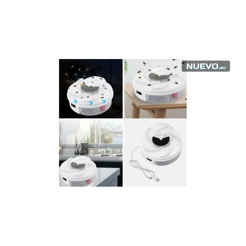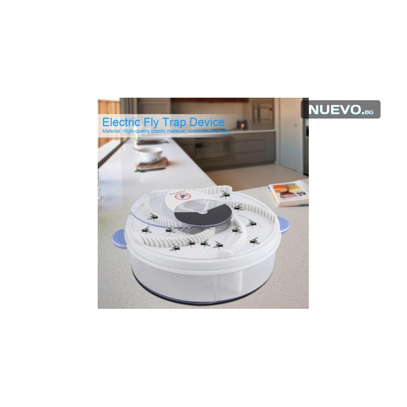 Електрически капан за мухи представлява кръгъл уред, разделен на 5 зони. Във всяка зона има обособено място, в което да се постави примамката (смес, привличаща мухите).Мухите се подмамват от нея и кацат по целия капан за мухи.Включвайки уреда в тока, предпазният капак отгоре започва бавно да се върти, избутвайки мухите в долния съд на уреда.По този начин те са уловени и не могат да излязат без да отвориш съда.