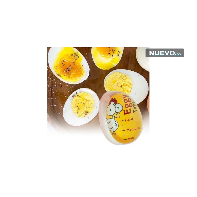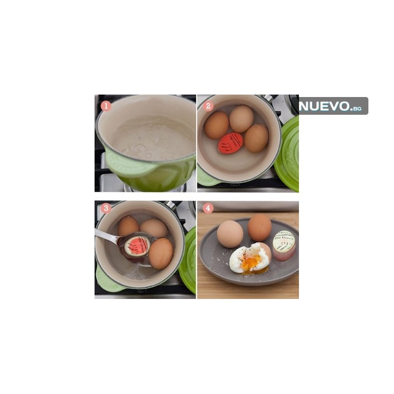 С този хронометър лесно можете да определите времето за варене на яйцата според предпочитанията си - дали да бъде рохко, средно твърдо или твърдо сварено. Просто трябва да пуснете хронометъра във водата, в която варите яйцата и да наблюдавате как се променя цветът му - от жълто до червено. Всеки цвят отговаря на твърдостта на свареното яйце, така че да знаете кога да извадите яйцата от врящата вода. Хитра и лесна за използване джаджа, която ще улесни много работата ви в кухнята.