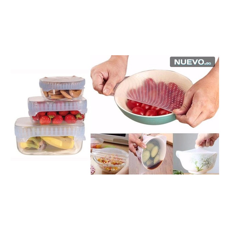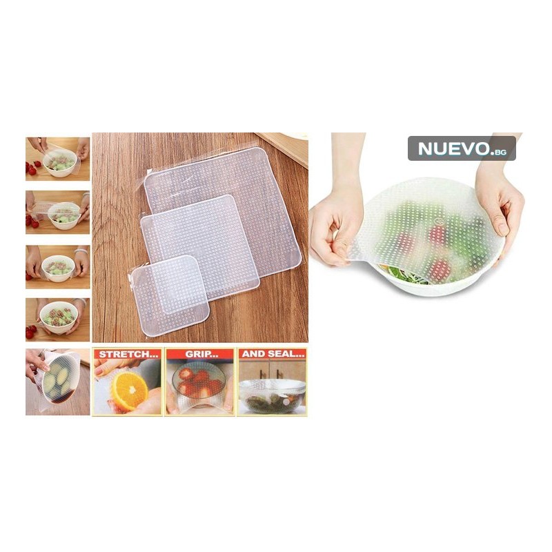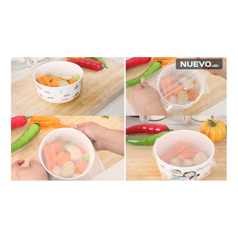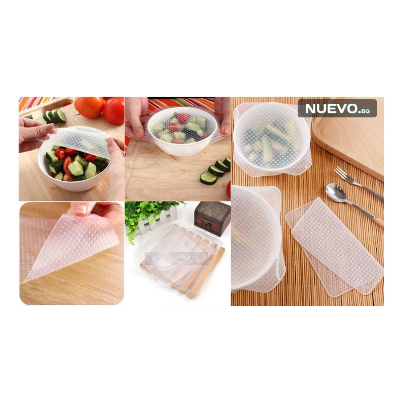 Запазете храната си свежа, във вида, в който сте я приготвили! Как ли? С помощта на новото ни предложение! Сет от 4 броя капаци за храна за многократна употреба.