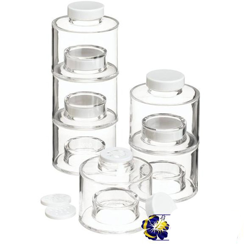 Сета се състой от 6 влизащи едно в друго шишенца, който не заемат място и всички подправки са подредени