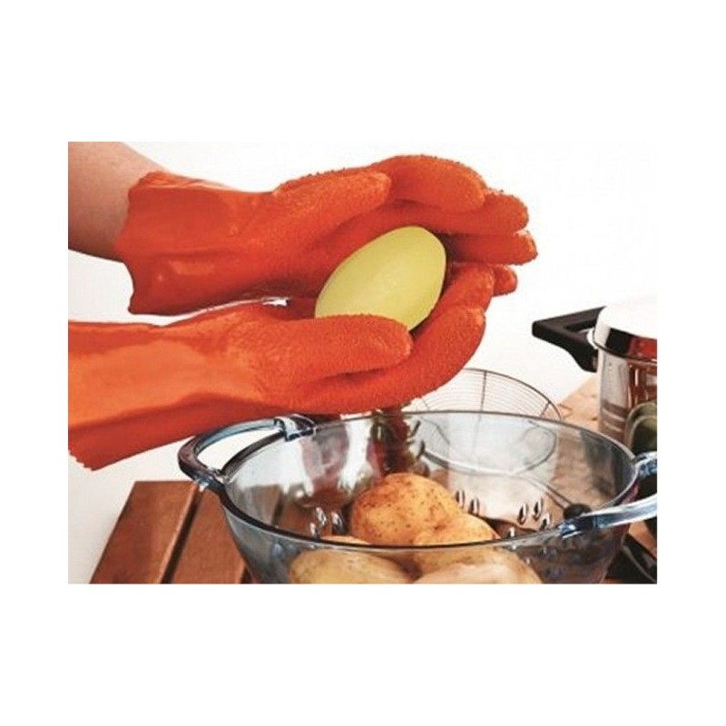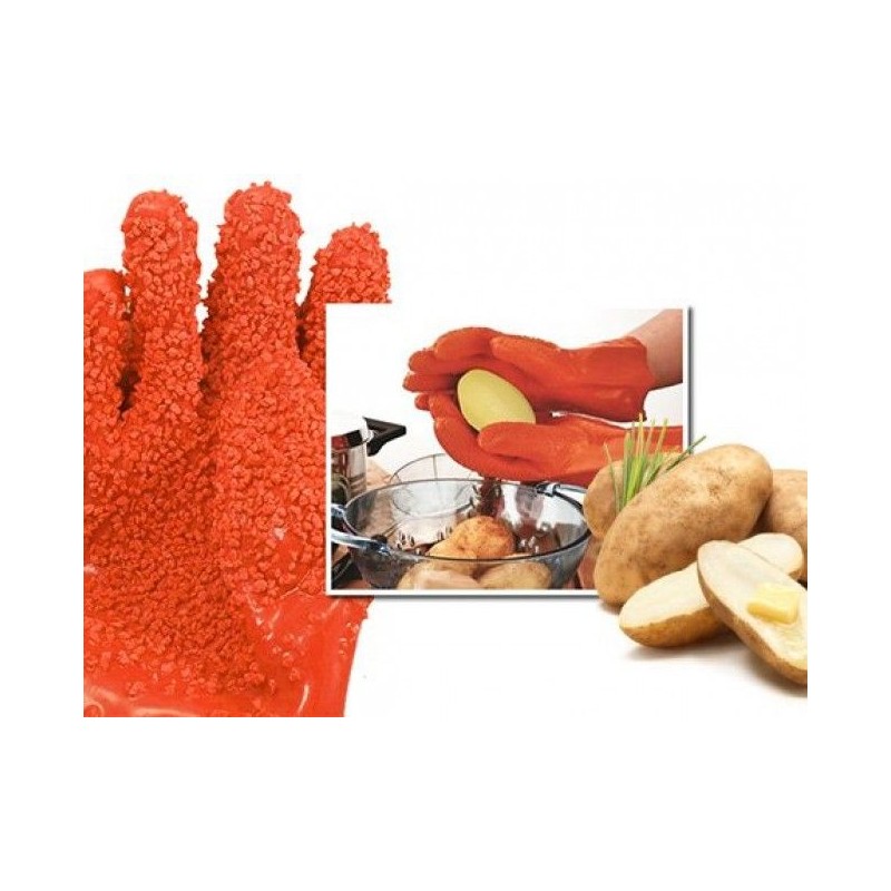Минимум усилие за максимален резултат! Тайната на ръкавиците се крие в тяхната модерна релефна повърхност, с която изтъркваш картофите. С тях улесняваш многократно работата в домакинството и то бързо и лесно! Нужни са ти само 8 секунди за да имаш идеално обелен картоф и то без да мокриш ръцете си и без риск той да се хлъзне и да се порежеш. Единственото усилие, което се налага да направиш е, носейки ръкавиците, да поставиш картофа под течаща студена вода и да го изтъркаш. Ще получиш перфектно обелени картофи за любимото ястие. Можеш да ги ползваш и за почистване на моркови, ряпа, алабаш за идеалната витаминозна салата. Опитай без продължително и досадно белене, спести си ценно време!