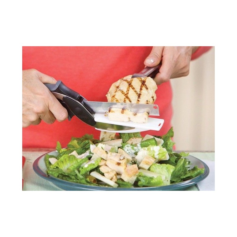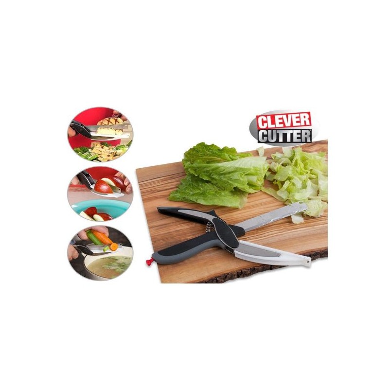 Clever Cutter е революционен 2-в-1 нож и дъска за рязане, който срязва на парчета любимите ви храни за секунди! Тайната е в умен дизайн 2-в-1 с ергономична дръжка с мощен натиск за да режете храната бързо и без усилие! Острието на Clever Cutter и изключително широка подложка прави рязането на плодове, зеленчуци, месо и по-бързо, лесно и без бъркотия.