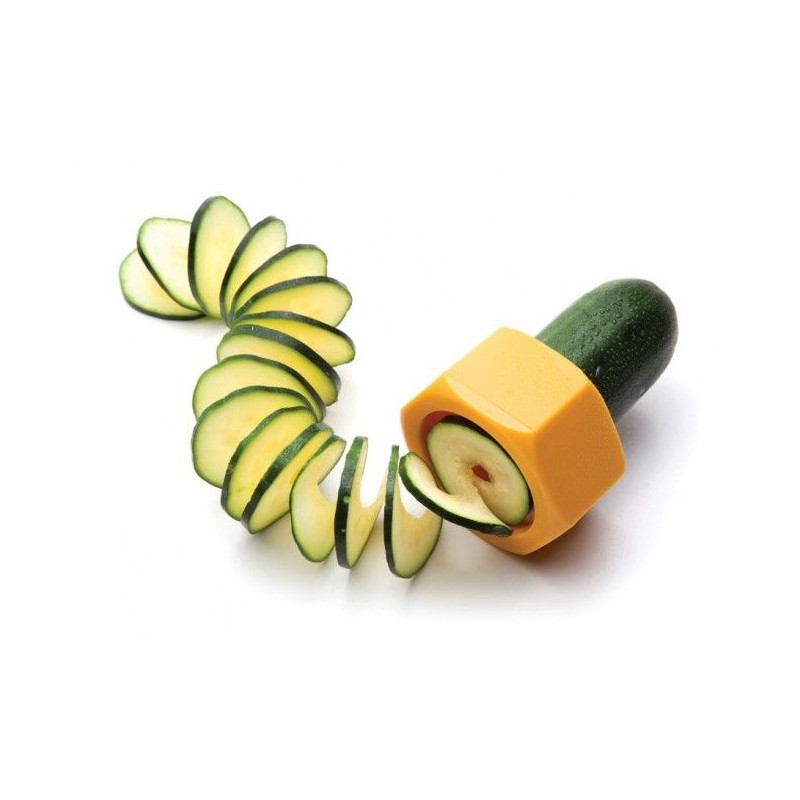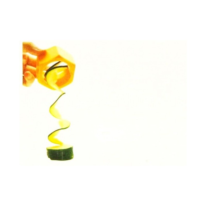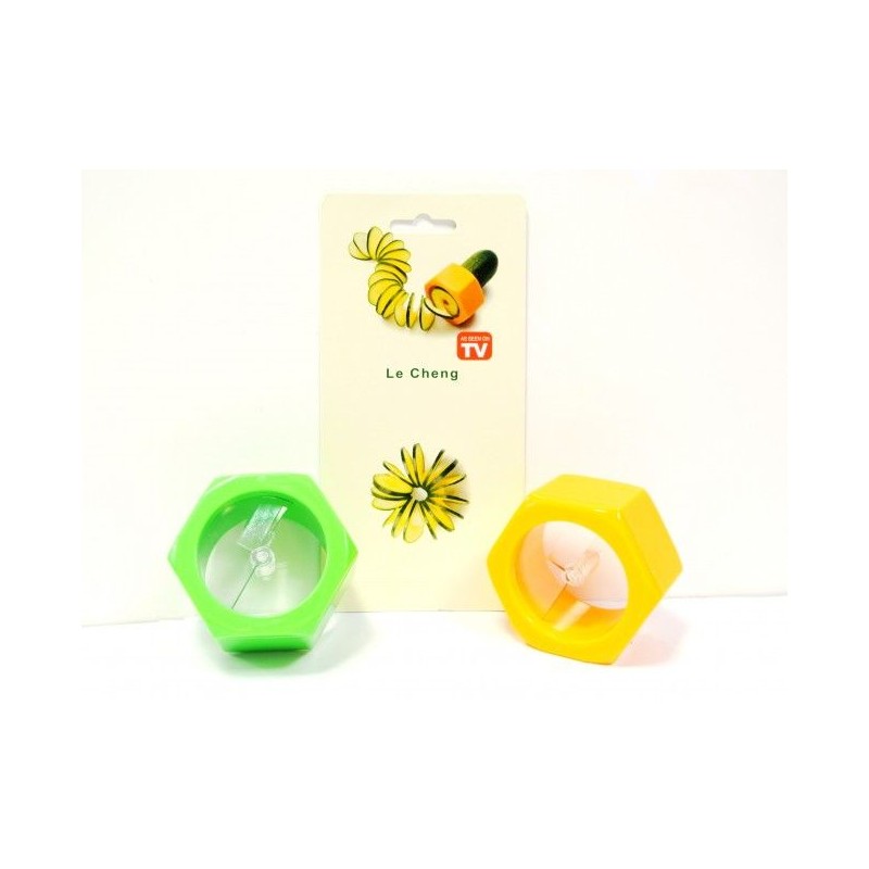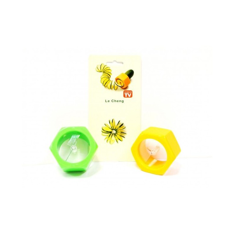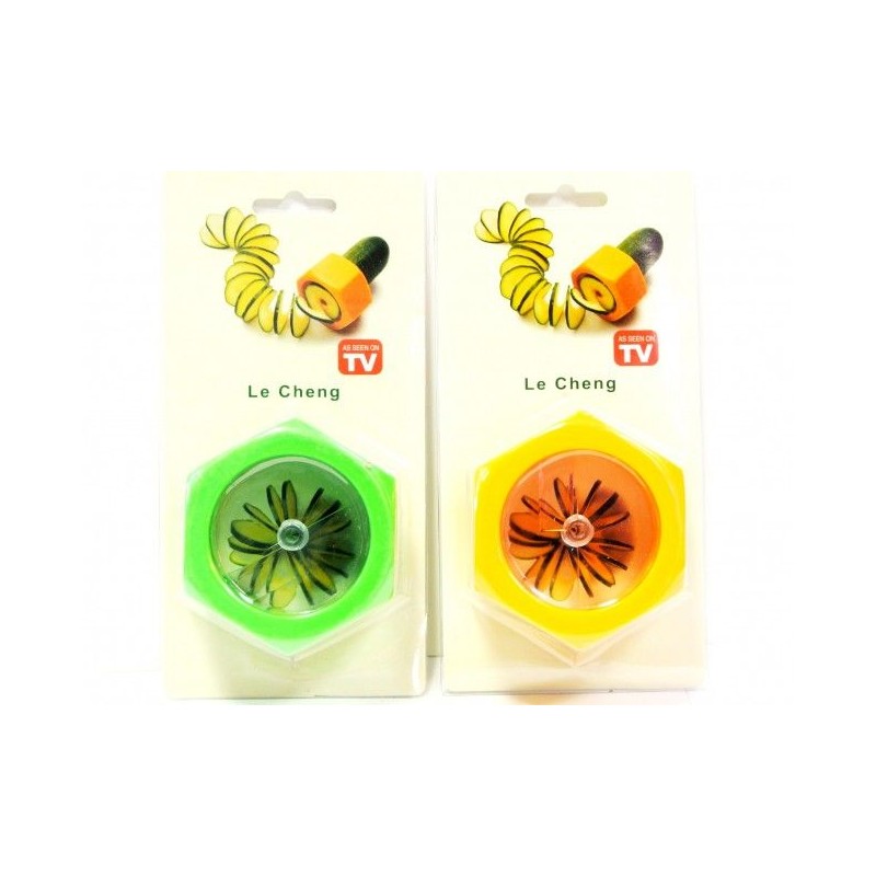 Le CHENG белачката се навива като винт около краставица, морков, банан, средно големи картоди и др. нарязвайки за секунди перфектни спирали.