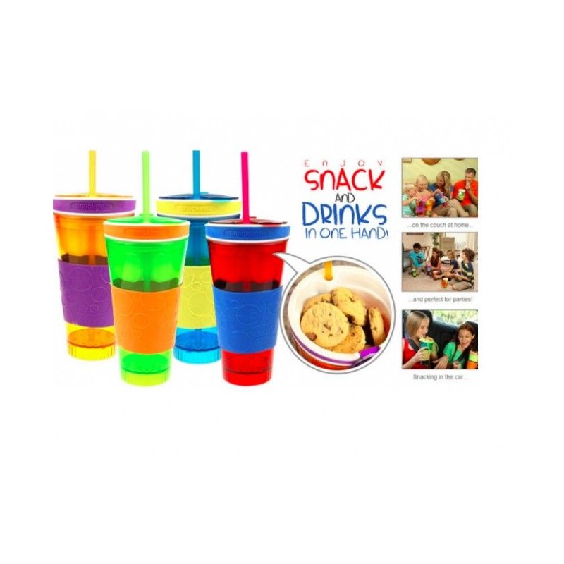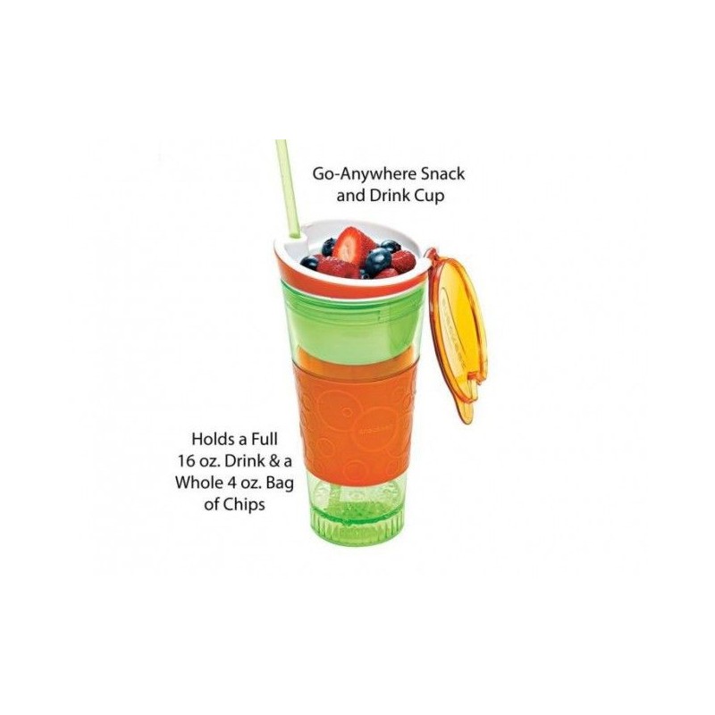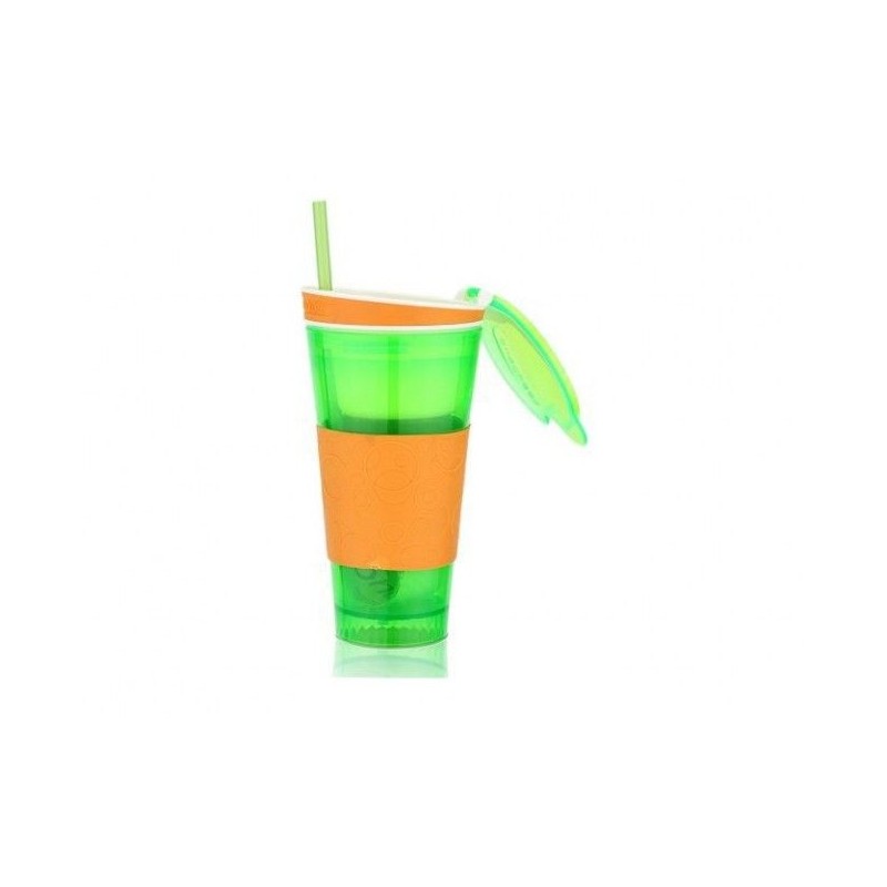 С функционалната чаша 2в1 вие или вашите деца едновременно се наслаждавате на любимата си напитка, парченца плодове, ядки и други.