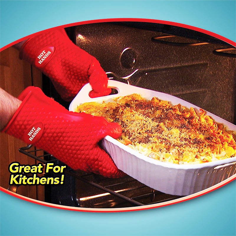 HOT HANDS са силиконови супер огнеупорни ръкавици, с които лесно и безопасно бъркате във вряла вода, обработвате горещи ястия директно във фурната или барбекюто. И за всички тези операции ще може да разчитате на пълната функционалност на собствените си пръсти. Готви и се забавлявай... без изгаряния...