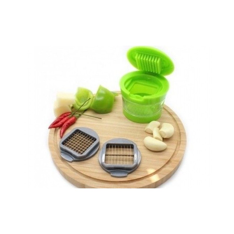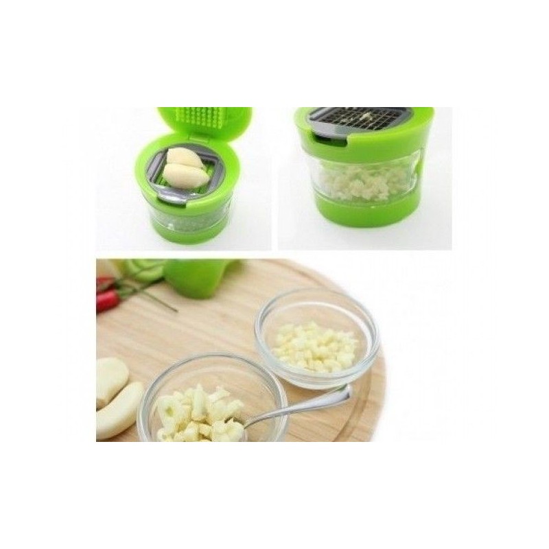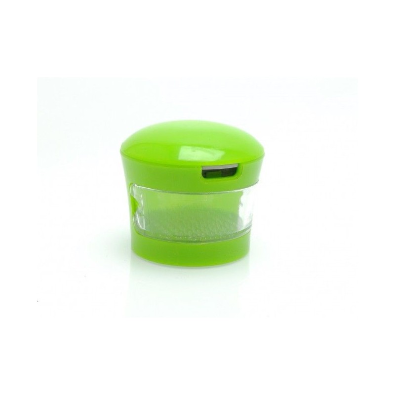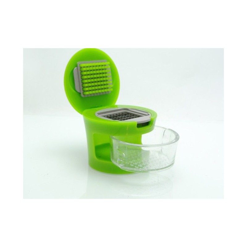 Garlic chopper e удобна преса за чесън с контейнер за съхранение и две приставки за пресоване. Доказано ефективен по целия свят