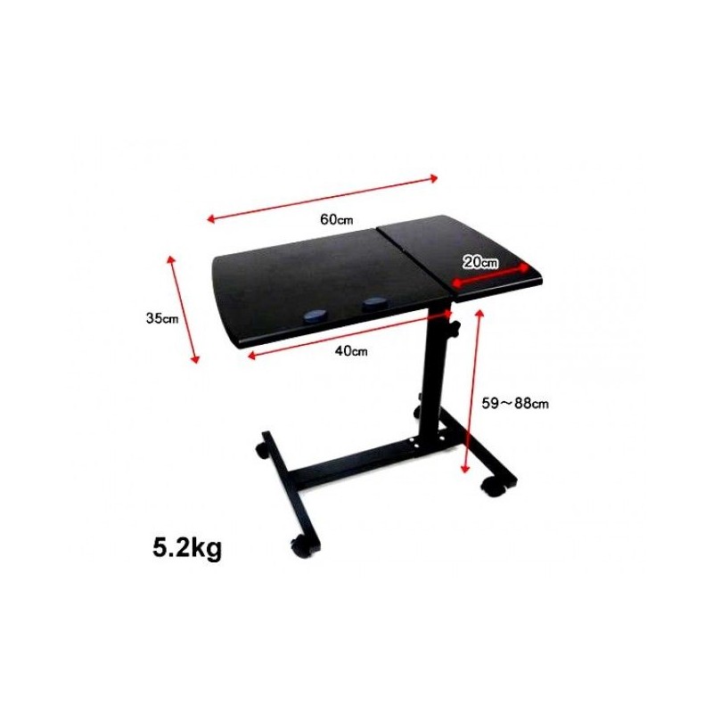 Ергономичен дизайн, позволяващ стойката да се подпъхне под легло, диван или кресло, така че масата застава пред/над полегналия работещ.
