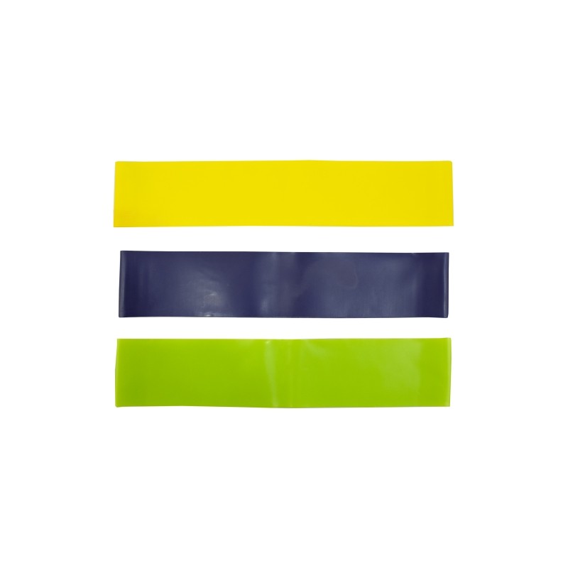 Комплект 3 броя ластици за тренировка с различно съпротивление, благодарение на което може да регулирате трудността на упражненията.