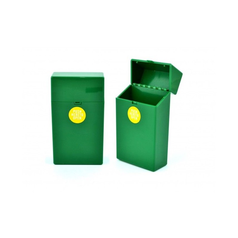Край на ужасните картинки по кутиите: пластмасов калъф за кутия за цигари 100мм. с автоматично пружинно отваряне ЗЕЛЕНО 089 съхранява дискретно кутията.