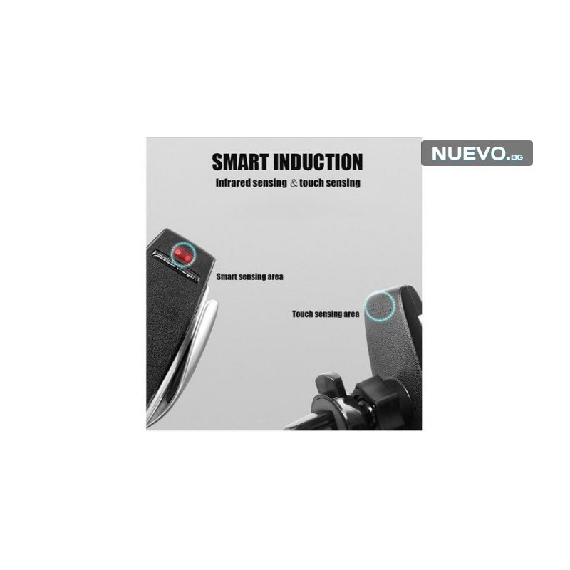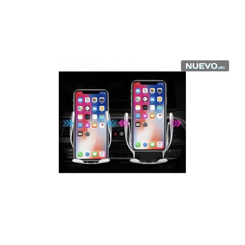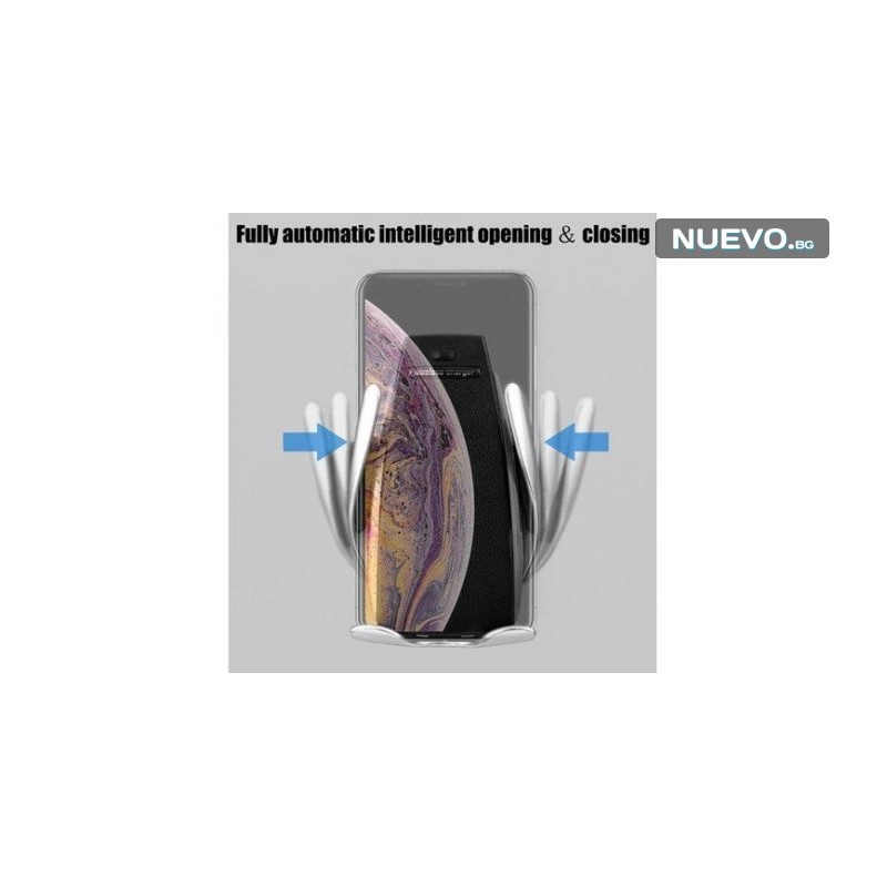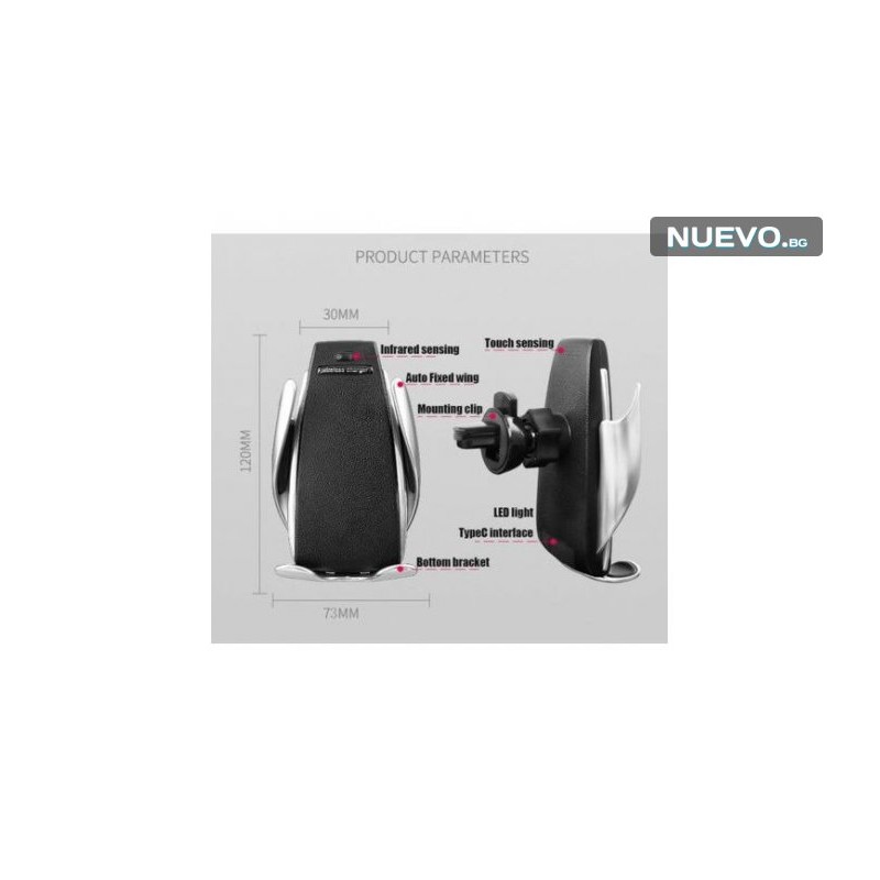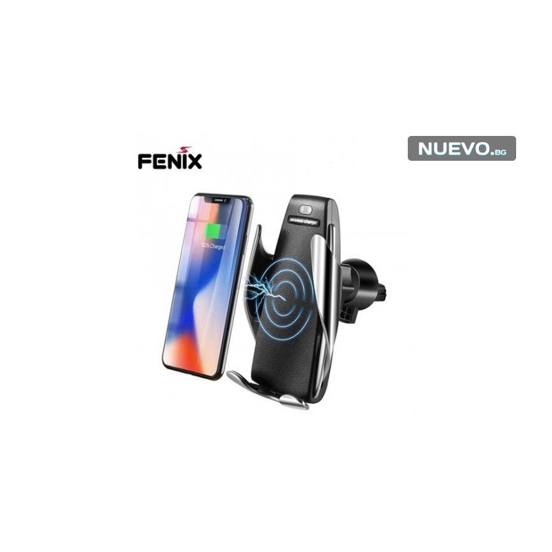 Автоматичен държач за кола с безжично зарядно устройство, модел FENiX® S5 Модерна дръжка, предназначена за хора, които ценят дизайна, практичността и новите решения Висококачествен автомобилен държач, предназначен за монтиране в вентилационната / вентилационната решетка на нашата кола. Той използва съвременна технология, състояща се от автоматично затягане на ръцете, което прави дръжката изключително функционална и все пак запазва своя универсален характер. максималната широчина на раздалечените рамена е 95 mm Щандът, който поддържа нашето устройство, има прорез, предназначен за USB кабели тип C Благодарение на вградените сензори в горната част на дръжката, страничните рамена на дръжката се отварят и затварят автоматично Това е много практично решение, всичко, което трябва да направите, е да приближите телефона си и ръцете ви автоматично ще се разширят, за да издърпате телефона от дръжката, дръпнете пръста си към гърба, горната част на дръжката. Дръжката поддържа телефона много стабилен дори и на най-взискателните повърхности, можете да използвате само една ръка, за да извадите телефона от държача.
