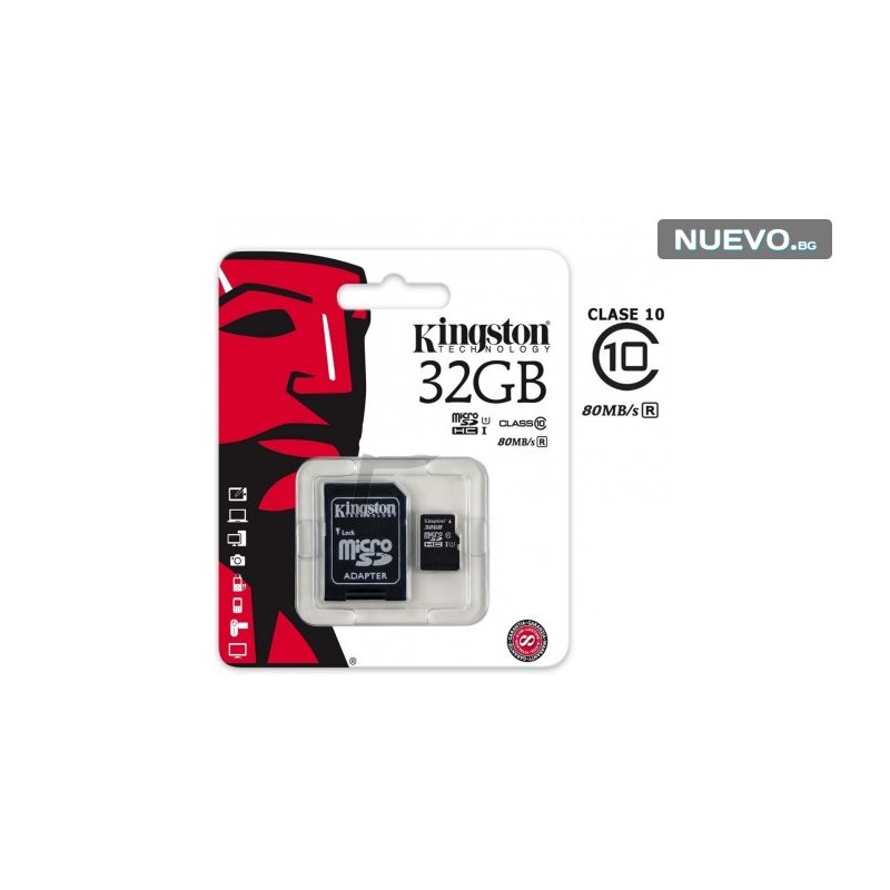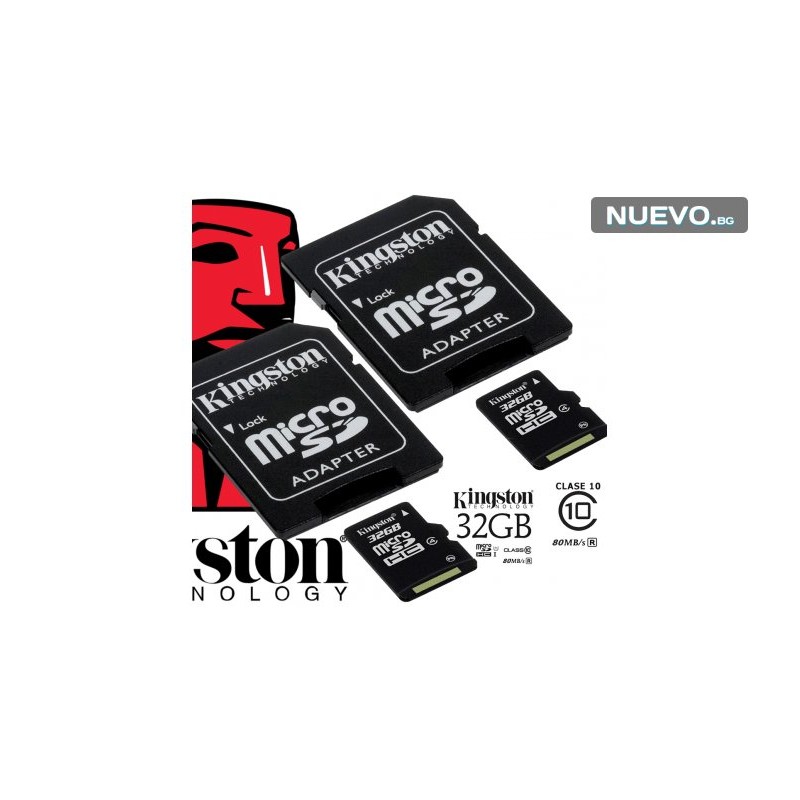 НУЕВО ти предлага супер промо на голяма карта micro SD KINGSTON 32 GB в комплект със SD преходник, който създава удобство за сваляне на информацията и за ползване в професионални камери.