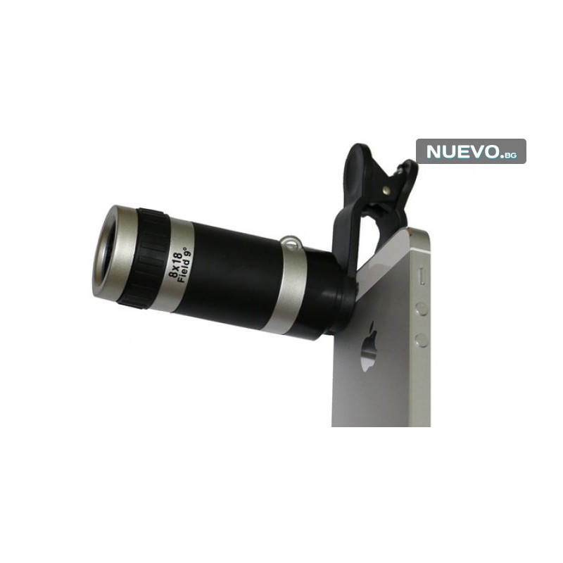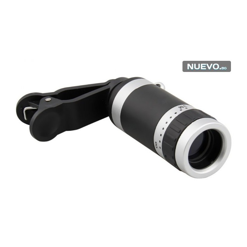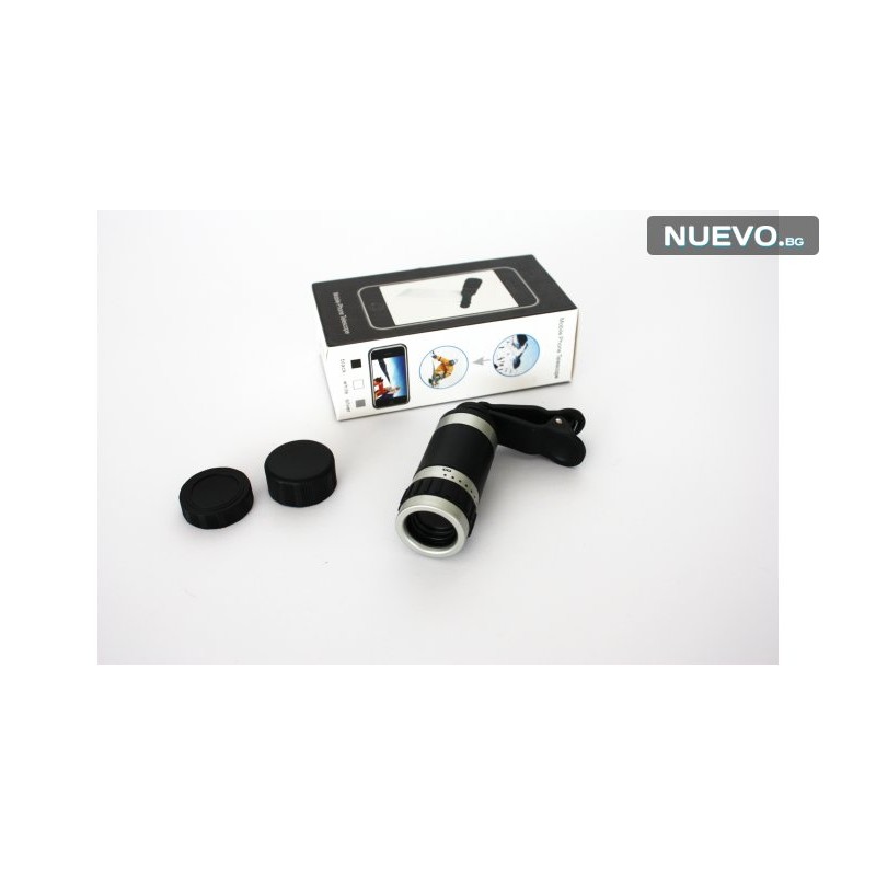 Външен обектив за телефон тип телескоп с увеличение до 8 пъти. Универсален уред, съвместим със всички смарт устройства на пазара! Максимално удобство и изключително лесен монтаж.