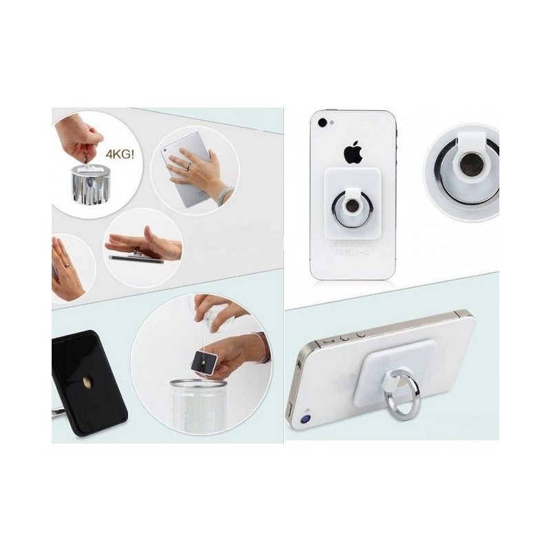 WO NICE RING е самозалепваща подложка с пръстен която се поставя на гърба на телефон/таблет, превръщайки го в удобен за носене пръстен и настолна стойка, държаща го изправен.