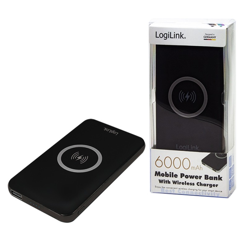 Безжично зареждаща външна Литиево-полимерна батерия 6000mAh, тънка, мощна в метален корпус