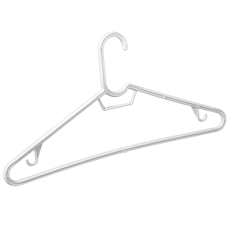Комплект от 6 броя класически закачалки, изработени от висококачествена пластмаса в бял цвят за дълготрайна употреба.