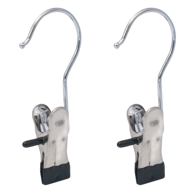 Комплект от 2 броя метални куки с щипка за закачане на панталони, поли, блузи и кърпи.
