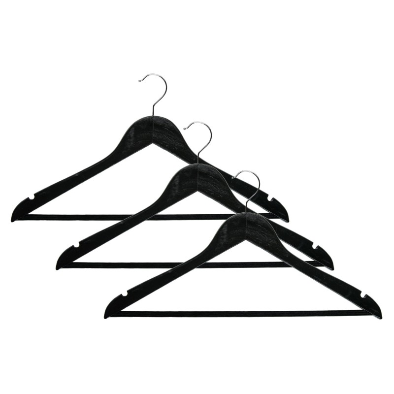 Комплект от 3 броя класически закачалки, изработени от здрава и устойчива дървесина в черен цвят.