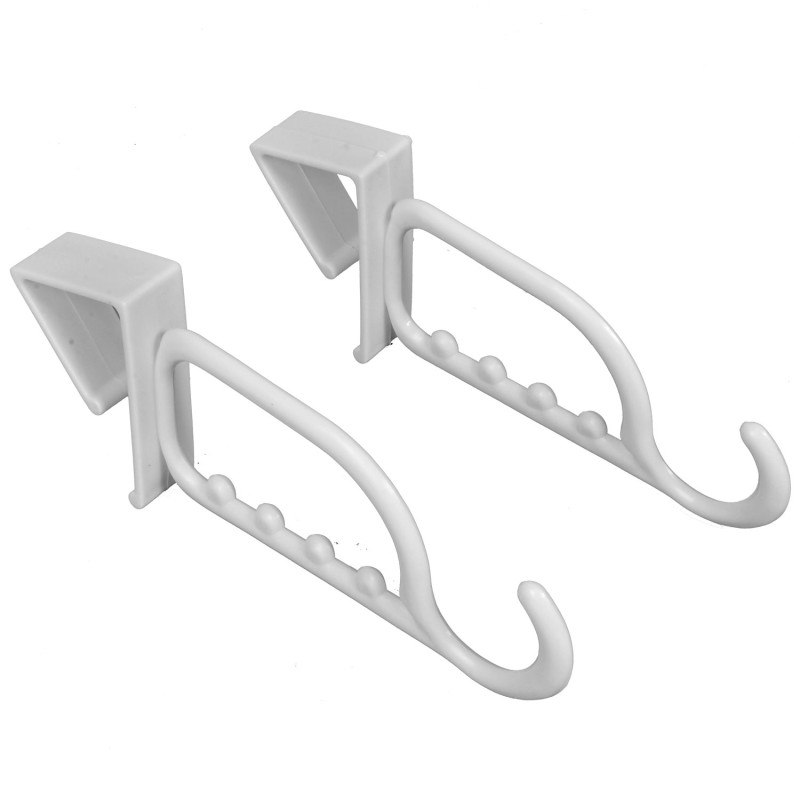 Комплект от 2 броя мултифункционални закачалки за врата, изработена от здрава и устойчива пластмаса в бял цвят за закачане на дрехи, чанти и други.