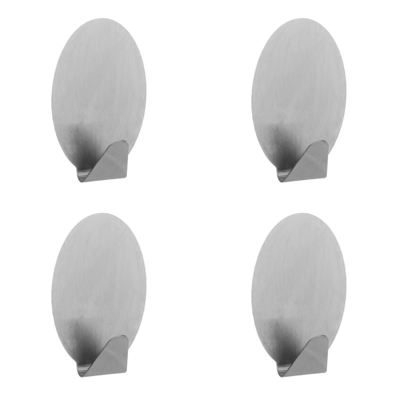 Комплект от 4 броя самозалепващи се закачалки за стена - тип кукичка, изработени от висококачествена метална сплав в сребрист цвят.