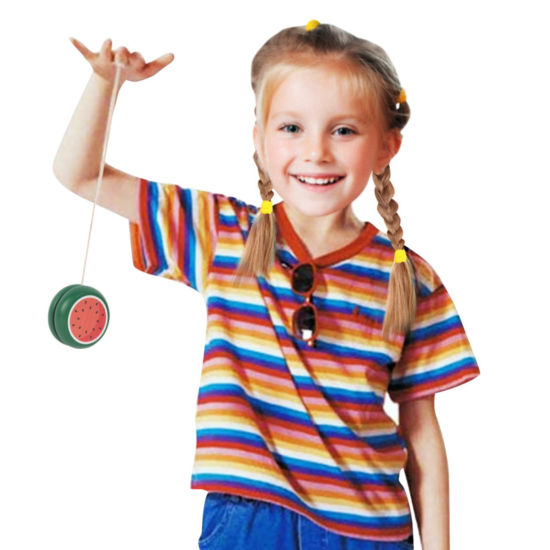 Класическа йо-йо играчка, изработена от висококачествена дървесина с ефектен дизайн във формата на диня.