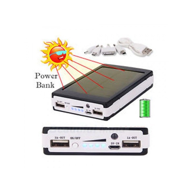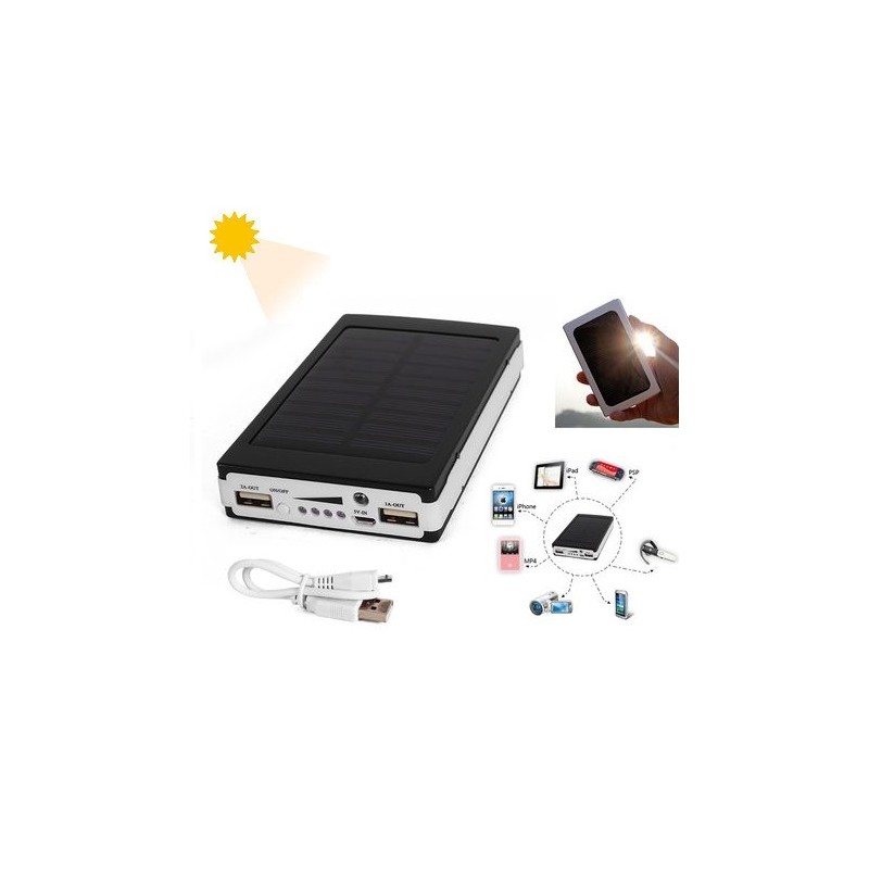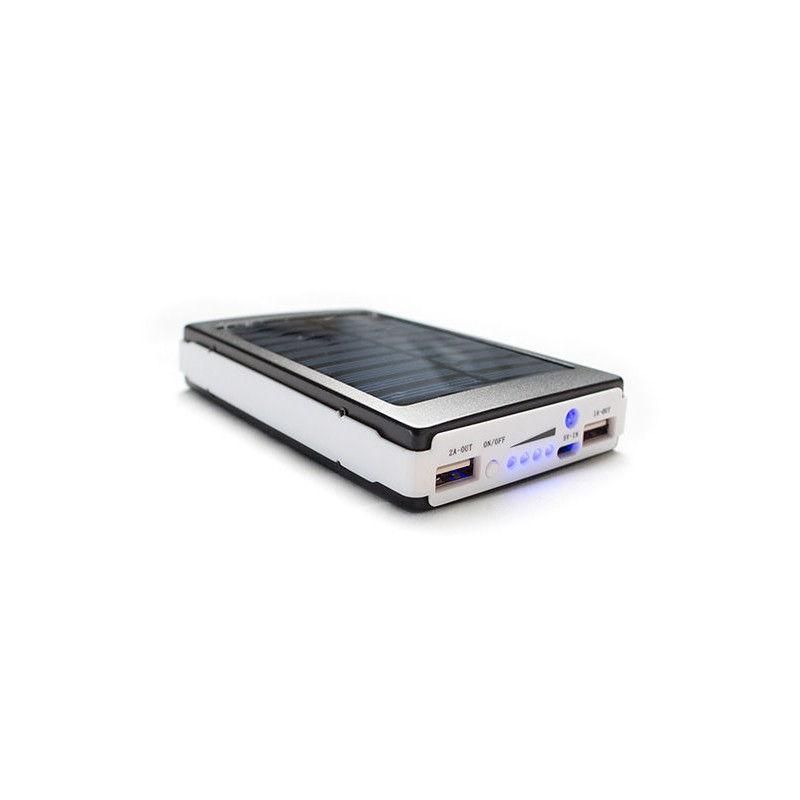 Батерията е с два USB изхода, което позволява да зареждате две устройства едновременно. Може да използвате соларната батерия и като ярък джобен фенер с три степени на осветяване!