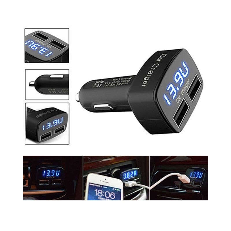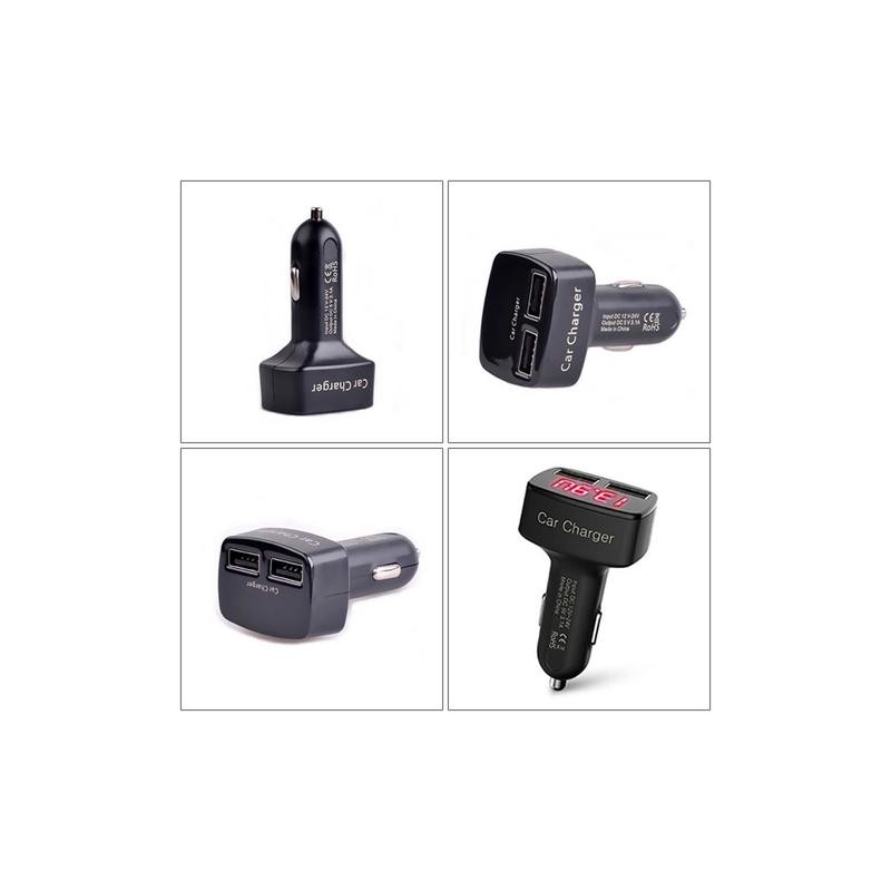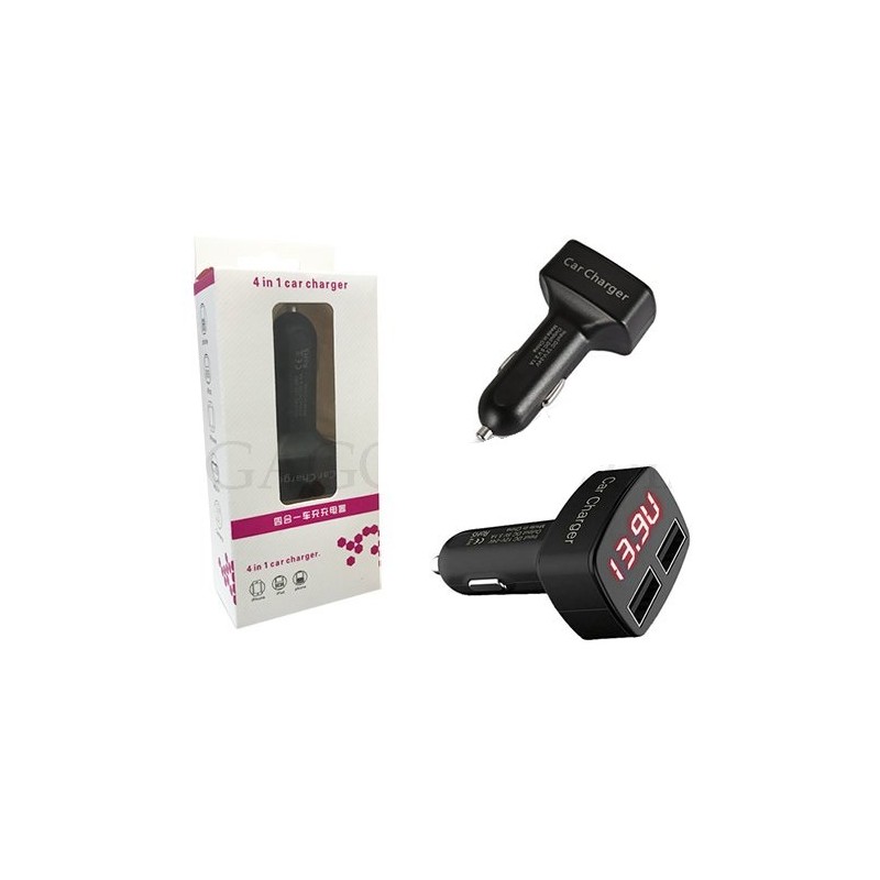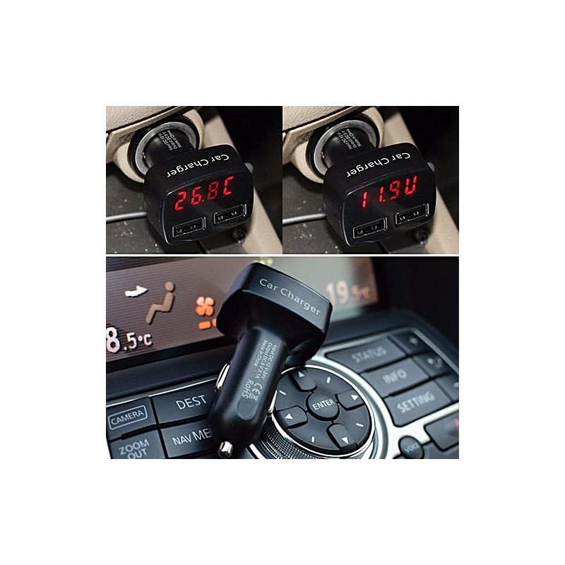 Многофункционално USB зарядно за автомобил с дигитален дисплей. Устройството комбинира в себе си 2 USB порта, вграден волтметър, амперметър и термометър. Дигиталният дисплей показва на всеки 10 секунди напрежението, температурата в купето и тока.